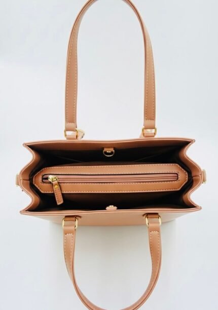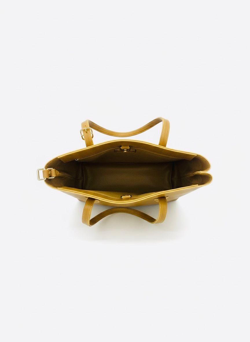 The Main Tote: A sophisticated, structured shoulder bag with a secure zip-top closure and durable straps. It’s spacious enough for your laptop, notebook, and all your daily business essentials.
